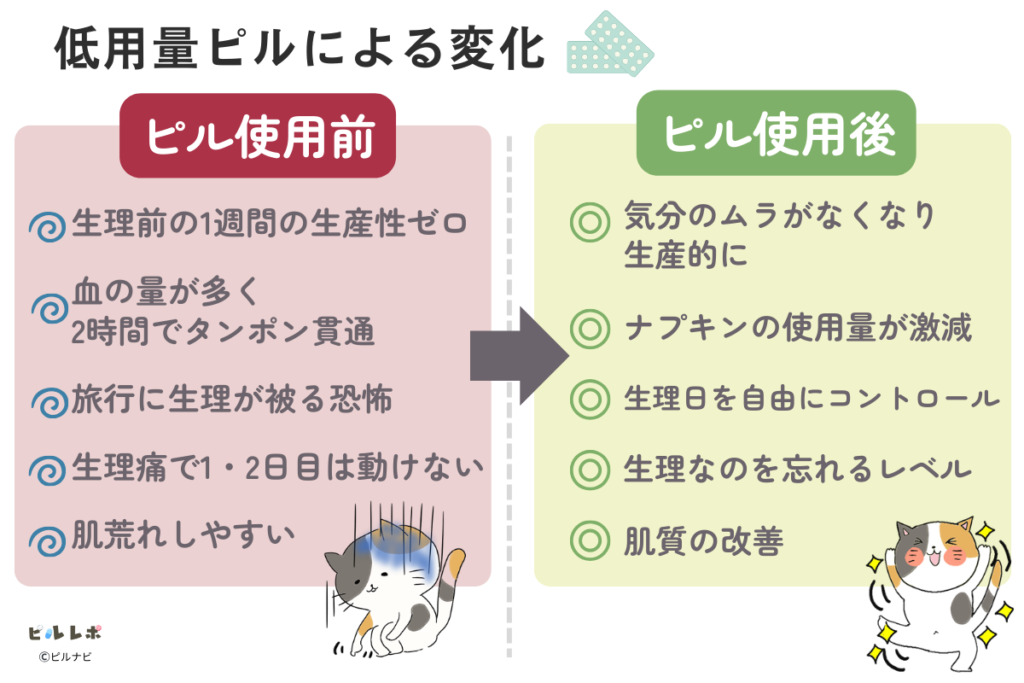 - 体調の変化:ピルを飲んでどう変わったか