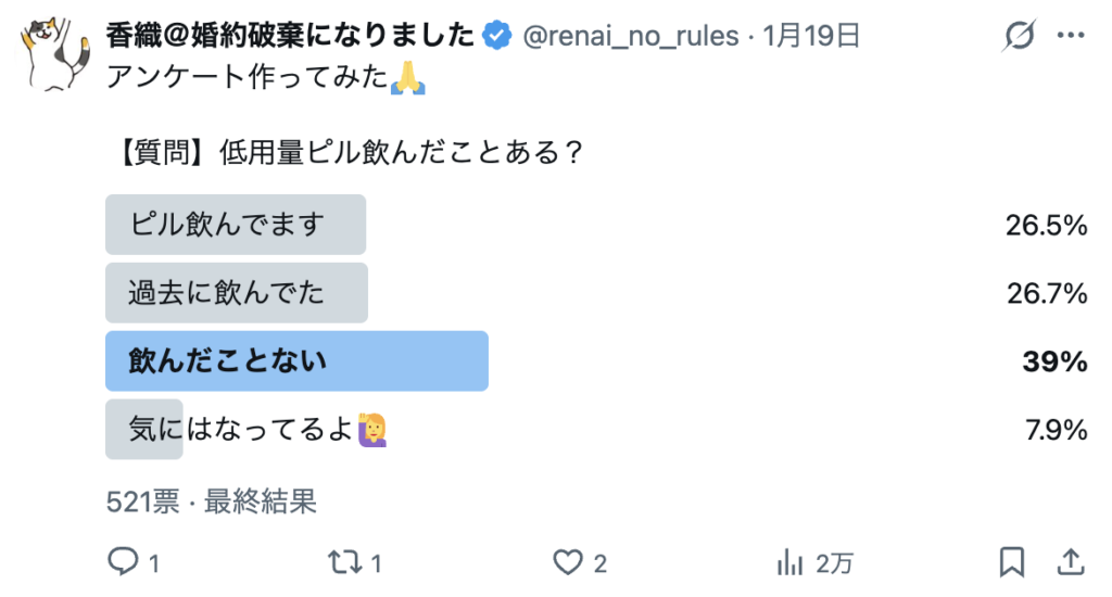 𝕏の1.4万人のフォロワーさんにピルのことをアンケート取ってみた