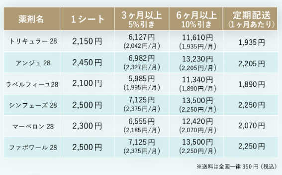 オンライン処方でも1シートずつ購入すると、ピル代は割高+送料も毎回かかり金額が高くなります。