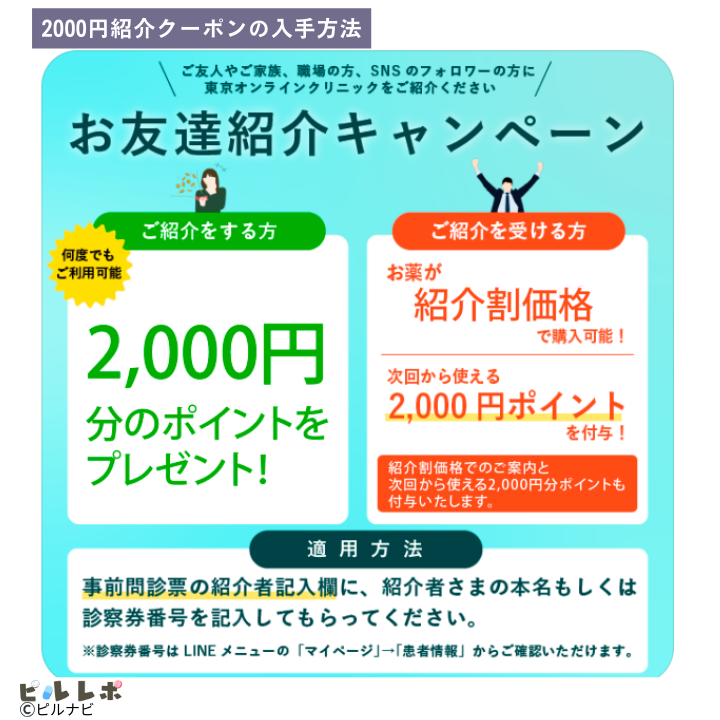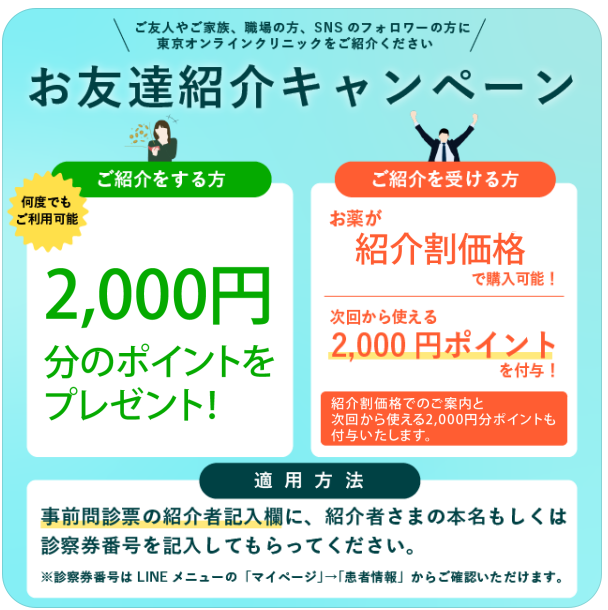 - 東京オンラインクリニックは2,000円分のポイント/1名