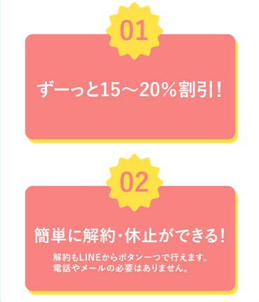 利用プラン | ![]() ![]() 3シートずつ決済プラン | ![]() ![]() 1シート定期便 |