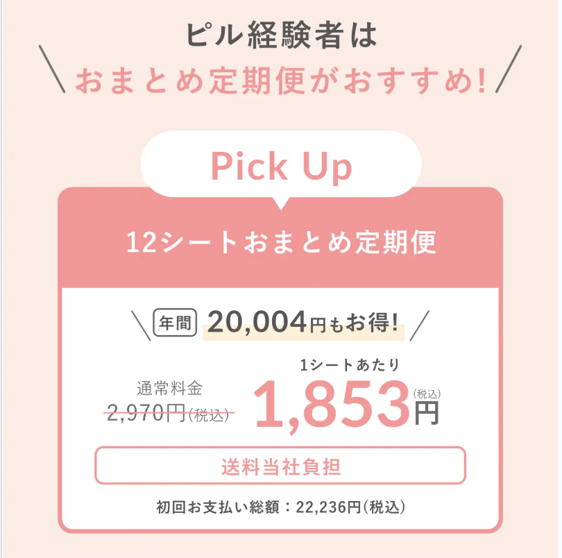 ※1 公式クーポン「3シートずつ決済プラン ピル代1ヶ月分無料」を利用した場合