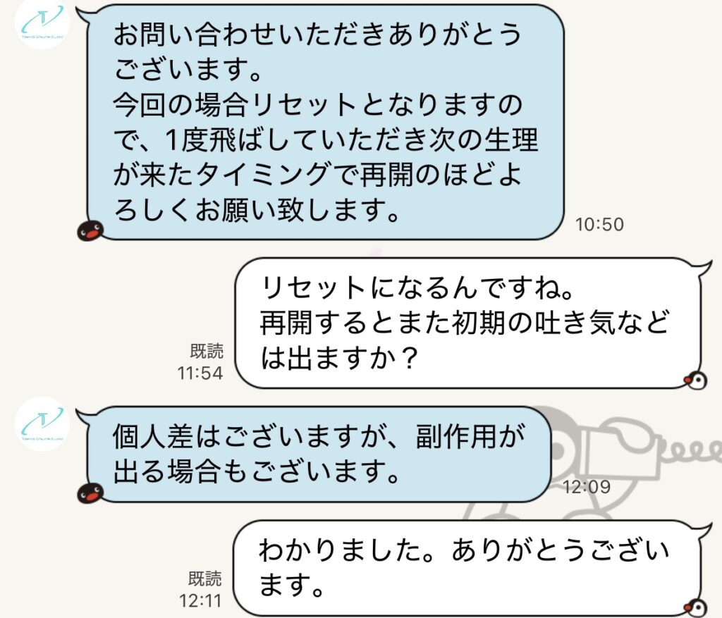オンラインクリニックのチャットで医師に質問した時の回答も載せときます👇